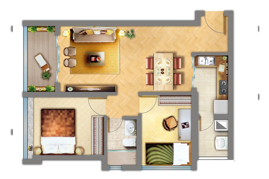 2室2厅1卫-2房2厅户型