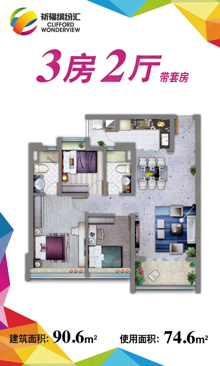 3室2厅2卫-90平三房