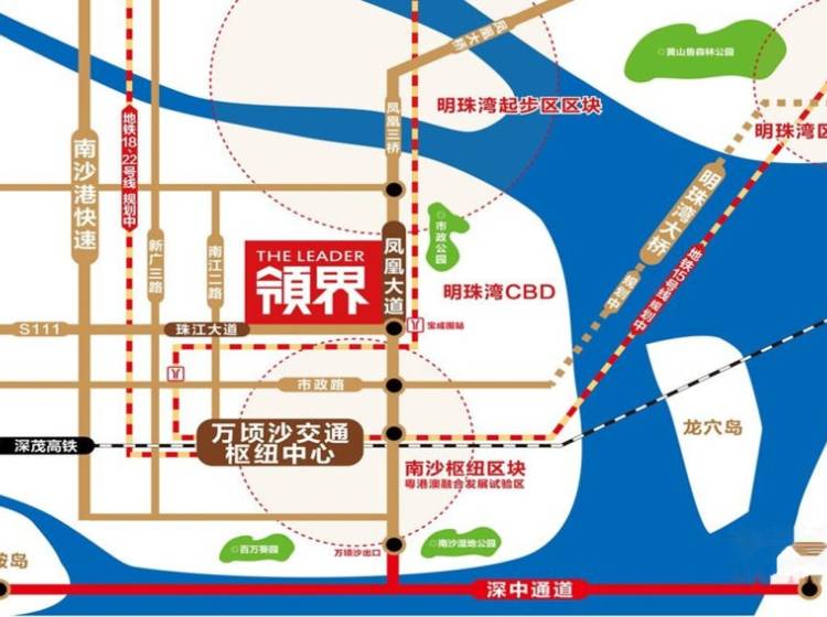 领界位于南沙新区、自贸区和明珠湾核心区三大重点规划的地带。南沙交通枢纽站旁,四周交通环绕,深茂高铁。离万顷沙 枢纽站仅5公里,多条高铁、城轨、 线路在此交汇。“深中通道”南沙落脚点离领界仅10公里,建成后可直达深圳。凤凰大道、明珠湾大桥位于项目两侧,直通万达、区 。小区低容积率、低密度、高绿化率。 领界小区 除了拥有万达广场、广州外国语 、百万葵园、湿地公园、南沙中医院等配套,还有大型邻里 、幼儿园、肉菜市场、公交站、风情商业街。 领界总占地84632㎡,总建筑面积163738㎡,绿化率30.3%,容积率1.8,低容积率享受舒适生活社区。本项目分两期开发,一期总占地面积22916㎡,总建筑面积为52649㎡,于2014年开始动工,共10栋,1栋约50㎡平层 ,3-11栋为两房、三房的住宅单位,地下约214个车位。两房面积86-92㎡,三房110-116㎡,均是N+1的高使用率户型。