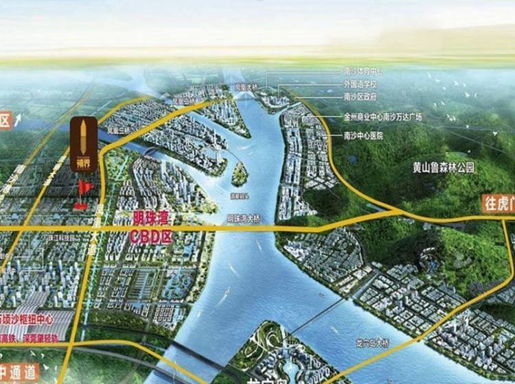 万达广场、广州外国语学校、百万葵园、湿地公园、南沙中医院
