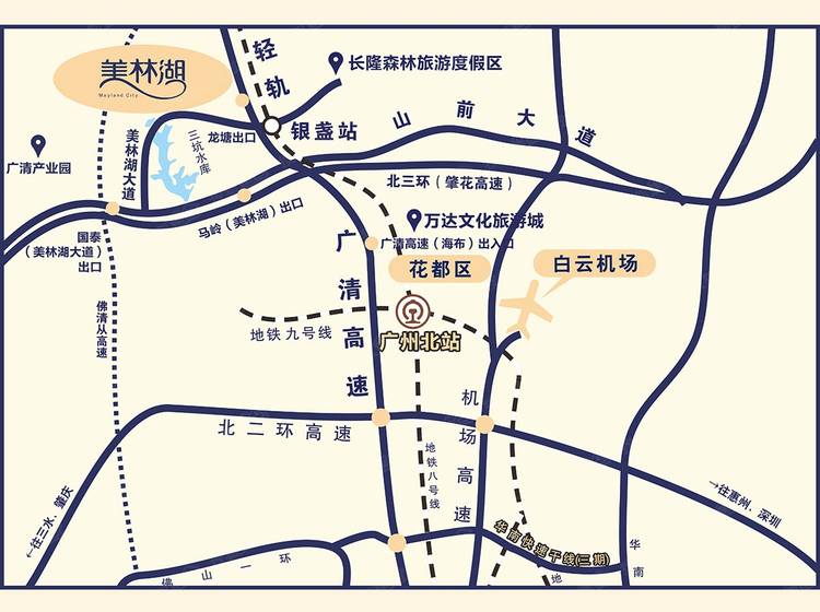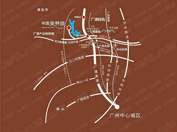 佛山:佛山一环—广清高速—花都狮岭山前大道祥安出口;