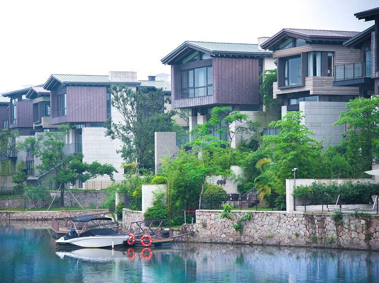 美林湖星海游艇别墅4000亩天然湖面之上,户户临水的别墅群落。每栋别墅均有私家游艇码头,下楼就能扬帆起航,尽情享受山间的清风与阳光;在家里,蔚蓝湖岸延伸到泳池边,荡漾在别墅的墙壁上,让每段时间都值得细细玩味。