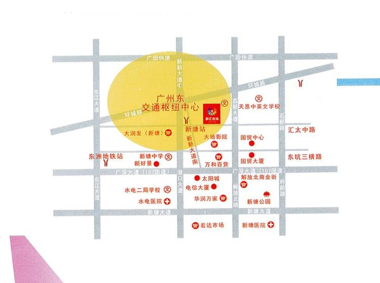 新汇时光位于增城区新塘镇汇太中路与丰华西路交汇处,毗邻广州东部交通枢纽中心,广深铁路、广汕铁路、地铁13号线、地铁16号线、穗莞深城际轻轨5条城际轨道的交汇点——新塘站,规划集站前广场、商务中心区、商业集群区、会展服务区等于一体。同时,广园快速、107国道、广深高速、广惠高速等环绕项目周边,目前地铁和轻轨已经动工。