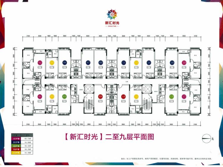 新汇时光规划总用地,1800平方米,总建筑面积7658平方米,其中住宅建筑面积6727平方米,商业面积849平方米,配套公建83平方米。
