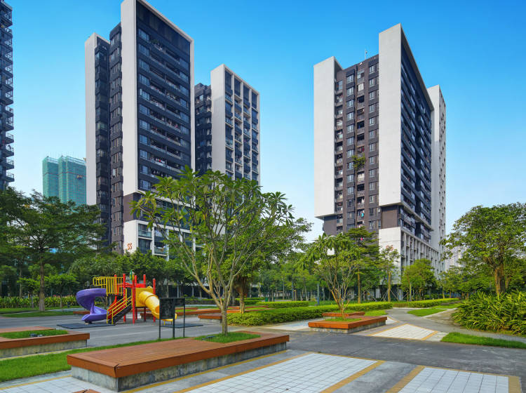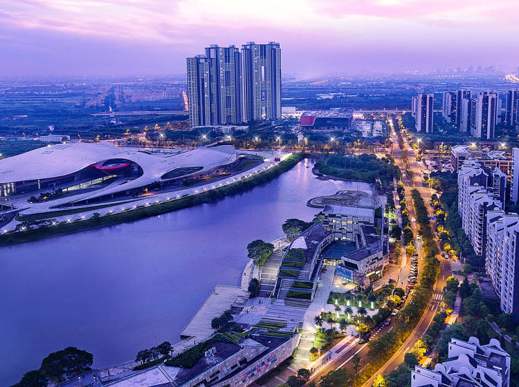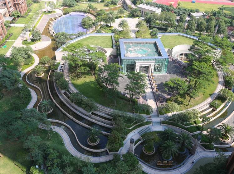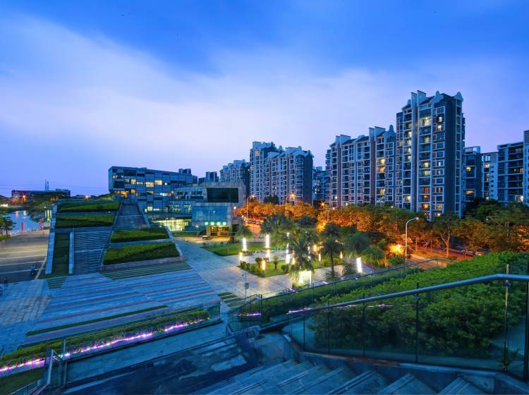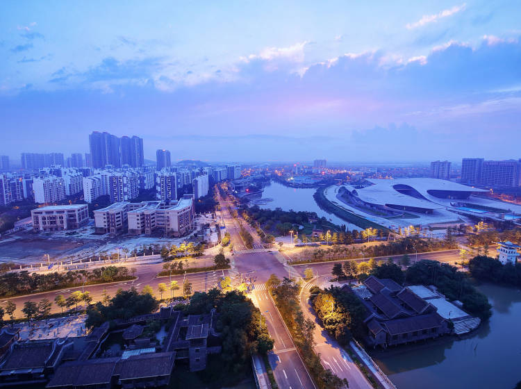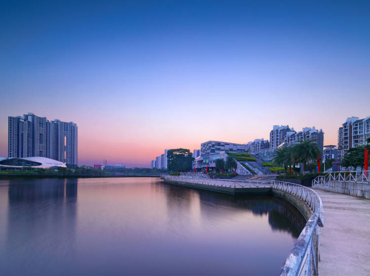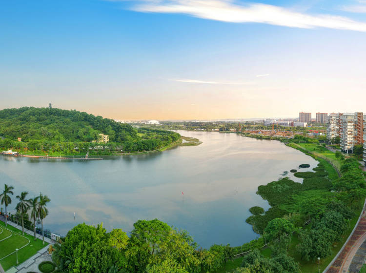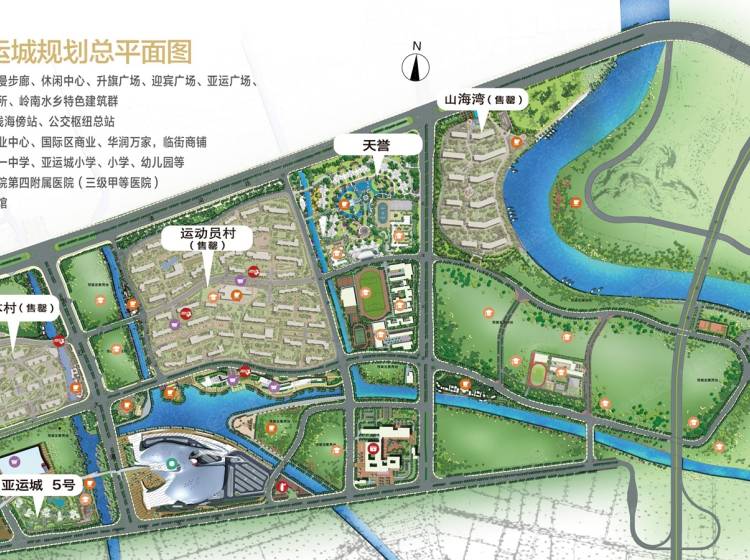休闲配套:迎宾广场、升旗广场、亚运广场、莲花湾中心湖、国际区滨水休闲长廊、岭南水乡建筑公园;