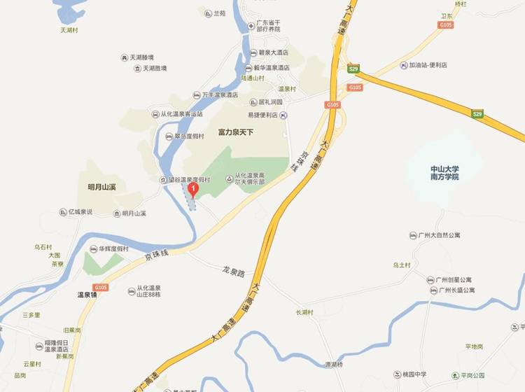 天河方向:走京珠高速,行驶21.0公里,进入大广高速,行驶34.5公里,从大广高速到温泉大道,行驶610米,进入温泉大道,行驶3.0公里,右转进入冲口路,行驶490米到御泉湾