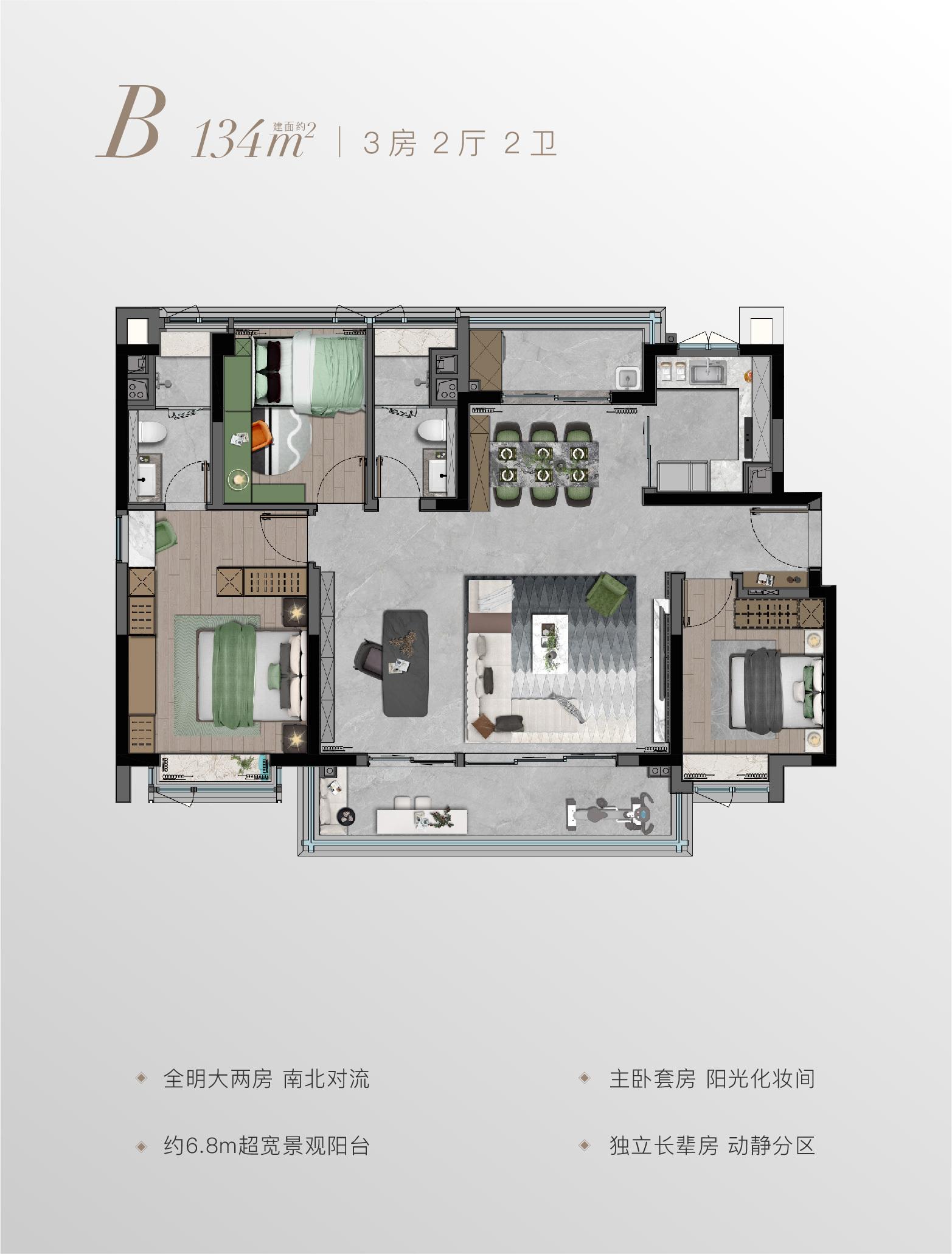 二期占地面积80485㎡,包含居住地块、配套小学、起航幼儿园,总建面约174894㎡,容积率1.4。其中居住地块住宅面积82854㎡,共610户,建面约106-173㎡大平层,由4栋24F塔楼、6栋14或15F板楼组成,公建化外立面、大玻璃窗墙体系、一梯一户私家电梯厅入户、270°奢阔会客厅景观面,将东方奢宅格局演绎到极致。"