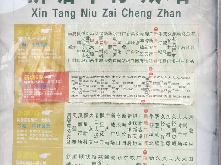 新塘牛仔城: 东莞615路、新塘3路、新塘8路短线、新塘6路