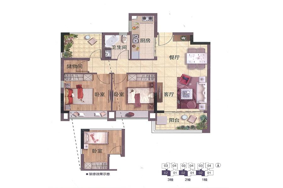 项目用地面积约4406㎡,总建筑面积约1.4万平方。共开发洋房3栋编号为A-C,共102户。