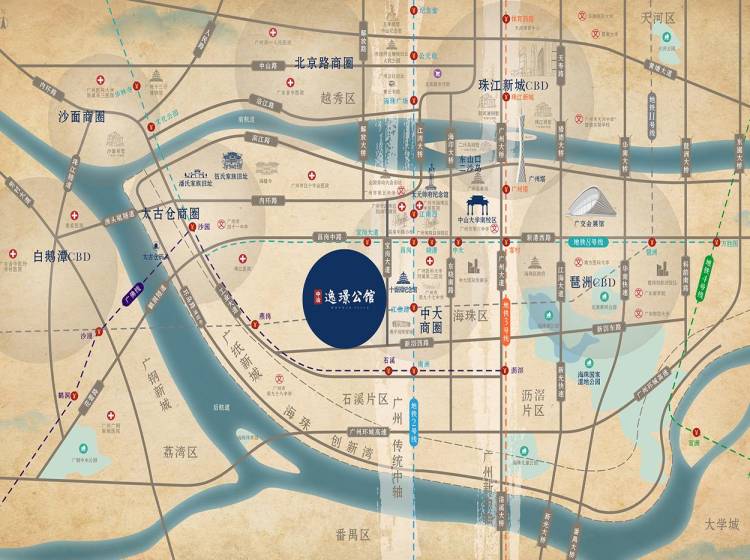中冶·逸璟公馆项目地处广州市区海珠中心、江南大道之上的核心区位,尽享海珠区三条黄金居住走廊的价值汇集。中冶·逸璟公馆作为中冶置业礼献广州市区中心的排名前列重量级作品,更是大手笔地规划前所未见的城市低密度住宅产品。在寸土寸金的市区中心,住宅用地极其稀缺的当下,中冶·逸璟公馆必将成为继沙面、新河浦、二沙岛、珠江新城之后,落子海珠的广州第五座城市中心的藏品级传世之作。