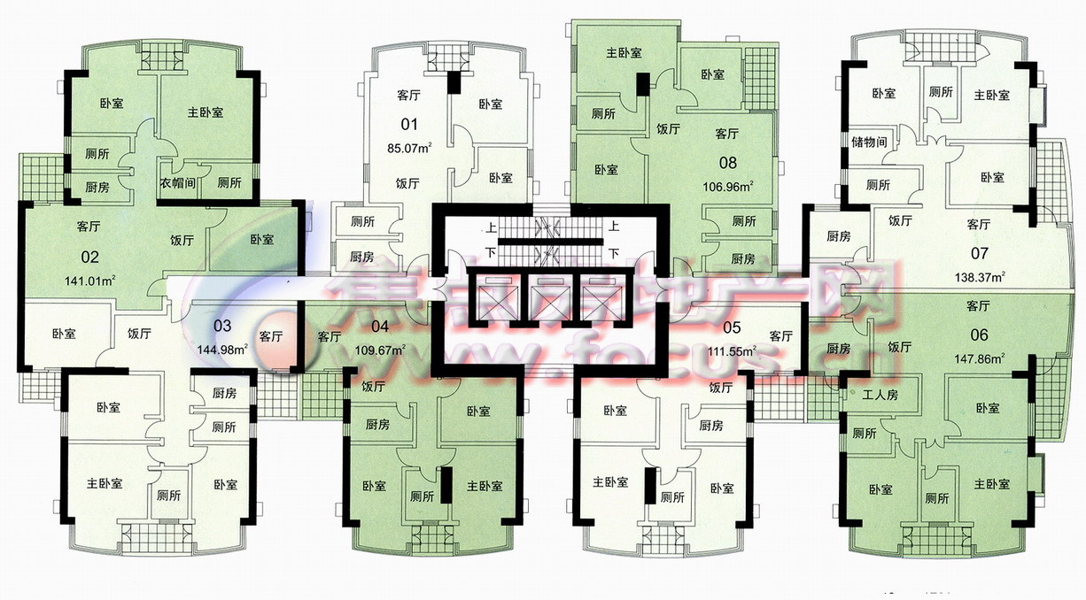 卫生服务:随楼附送全套名牌浴室洁具及配件