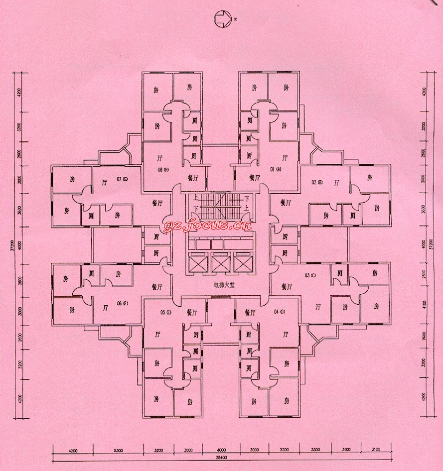 2室2厅1卫-翠竹苑A1栋6-24层平面图07单位