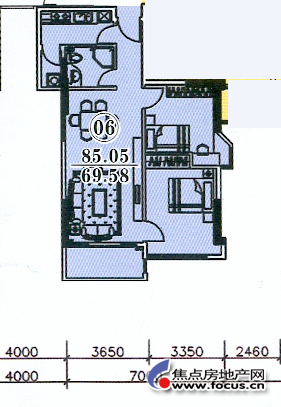 2室2厅1卫-翠竹苑A1栋6-24层平面图06单位