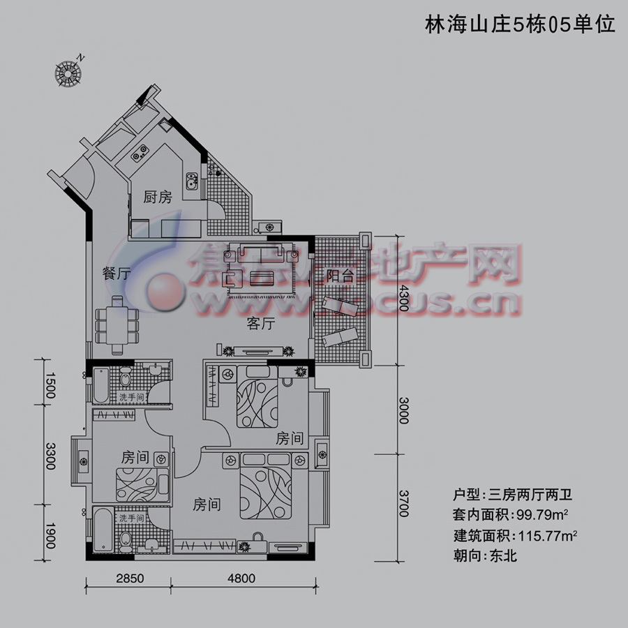 0室-2007金牌户型参选-保利林海山庄5栋05单位东北向建筑面积115.77平方米套内面积99平方米