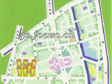采用“井”字结构,北面较长,南面较短。位于花地湾之中,配套设施齐全,邻近地铁站,交通方便