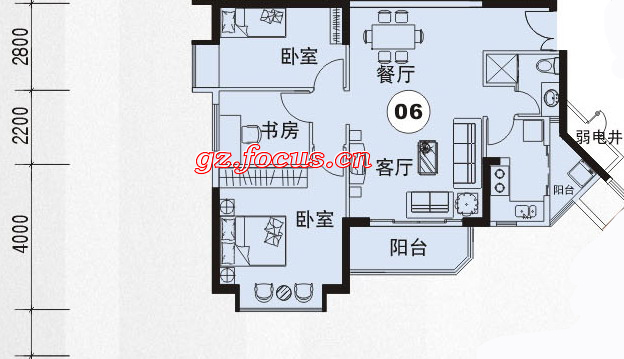 3室2厅1卫-简洁利索的小三房 城启伊顿18-A2座06