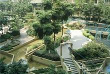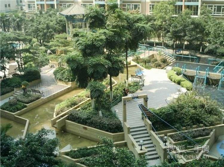 天朗明居的5米架空层与区内大面积的绿化广场、园林连缀成一体化的空间。小区道路以绿化为主,按季节色彩精心考虑树种搭配,强调四季更迭的美感和层次感,并通过绿篱与活动区相分隔。