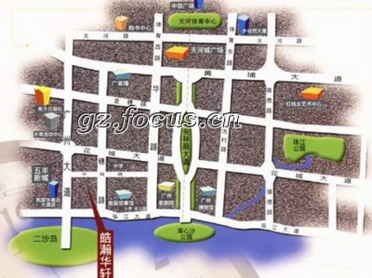 APM线花城大道站,妇儿中心站,大剧院站,海心沙站;3号线珠江新城站;5号线珠江新城站,五羊邨站