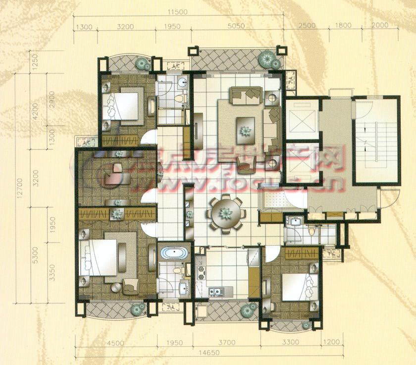 0室-星河湾6号A3户型325㎡四房两厅四卫
