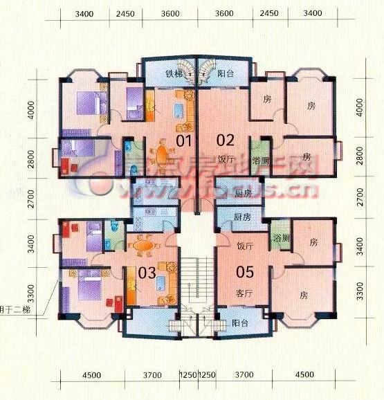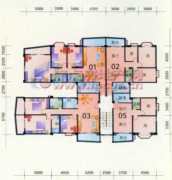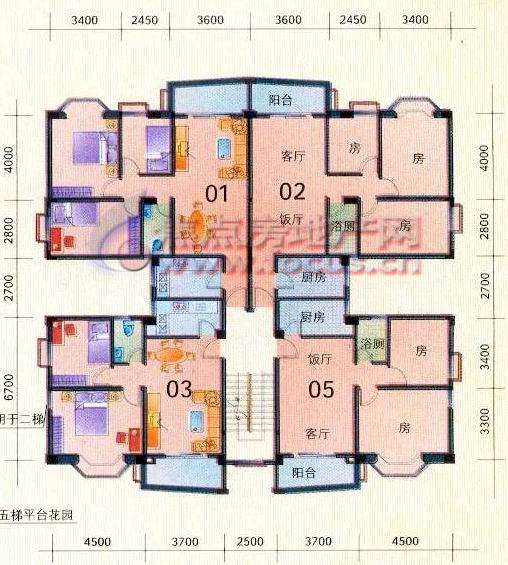 0室-富庭华园一街一座二、三、五梯3-6层平面