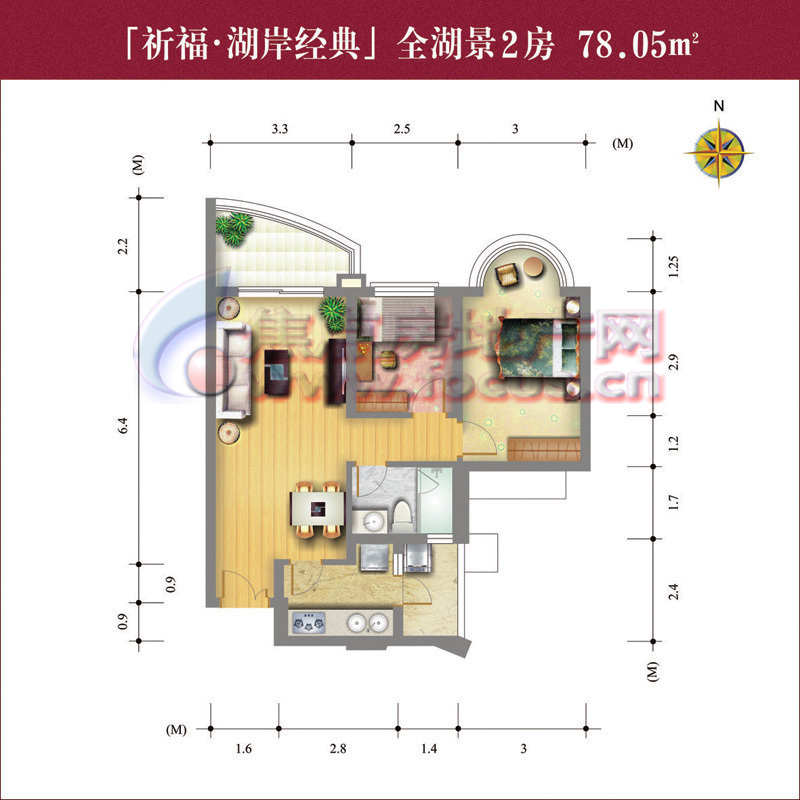 0室-2007金牌户型参选-祈福新村湖岸经典全湖景2房正北向78.05平方米