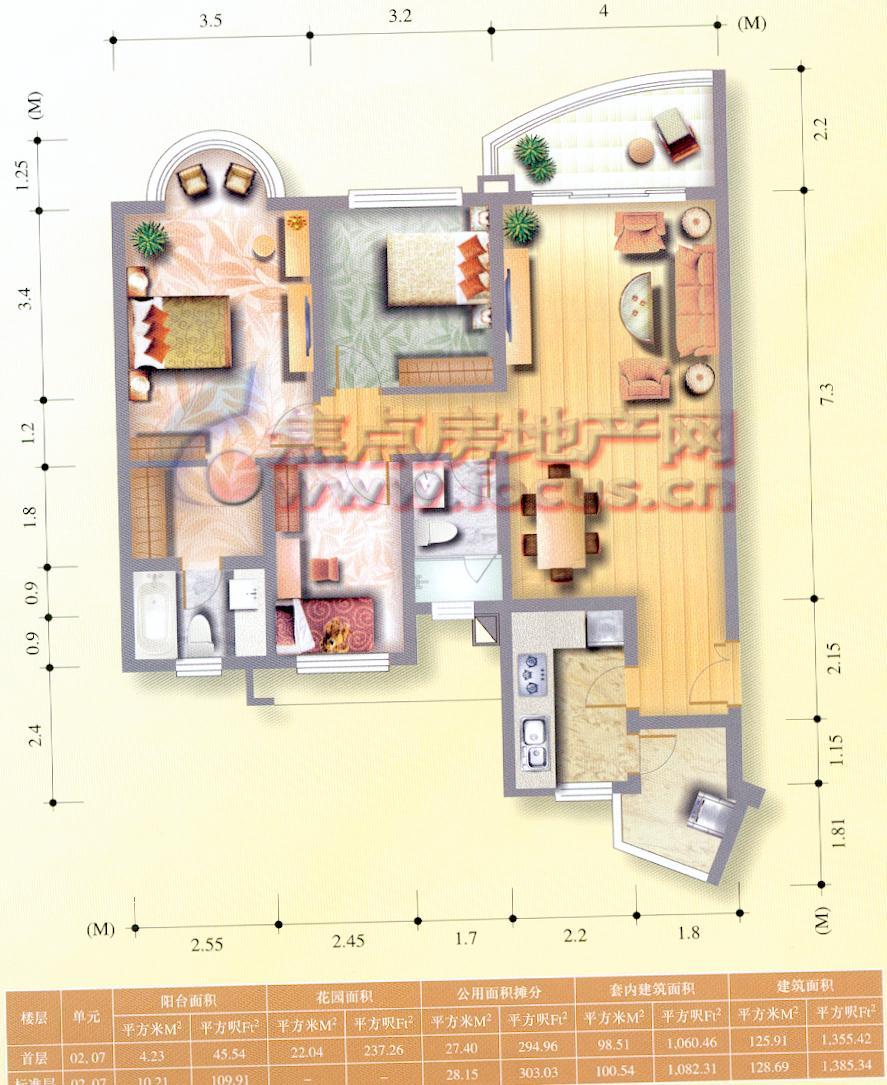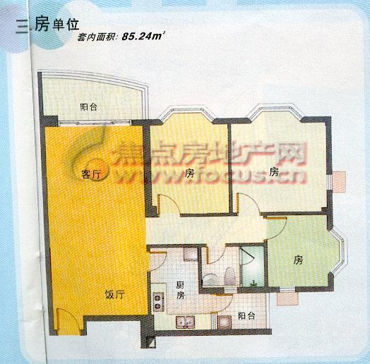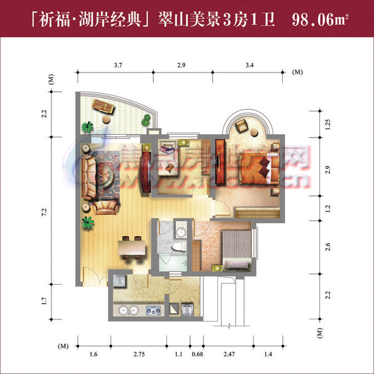 0室-2007金牌户型参选-祈福新村湖岸经典翠山美景3房1卫98.06平方米