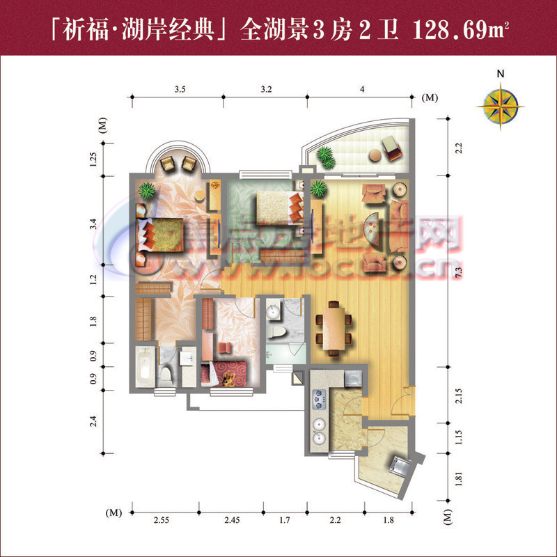 0室-2007金牌户型参选-祈福新村湖岸经典全湖景3房2卫正北向128.69平方米