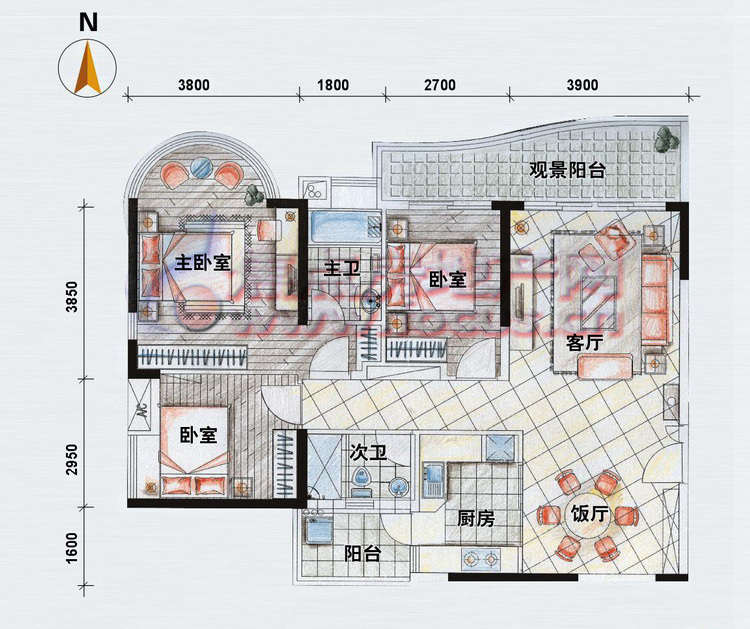 0室-2007金牌户型参选-逸景翠园御景轩B座05单位北向122方户型