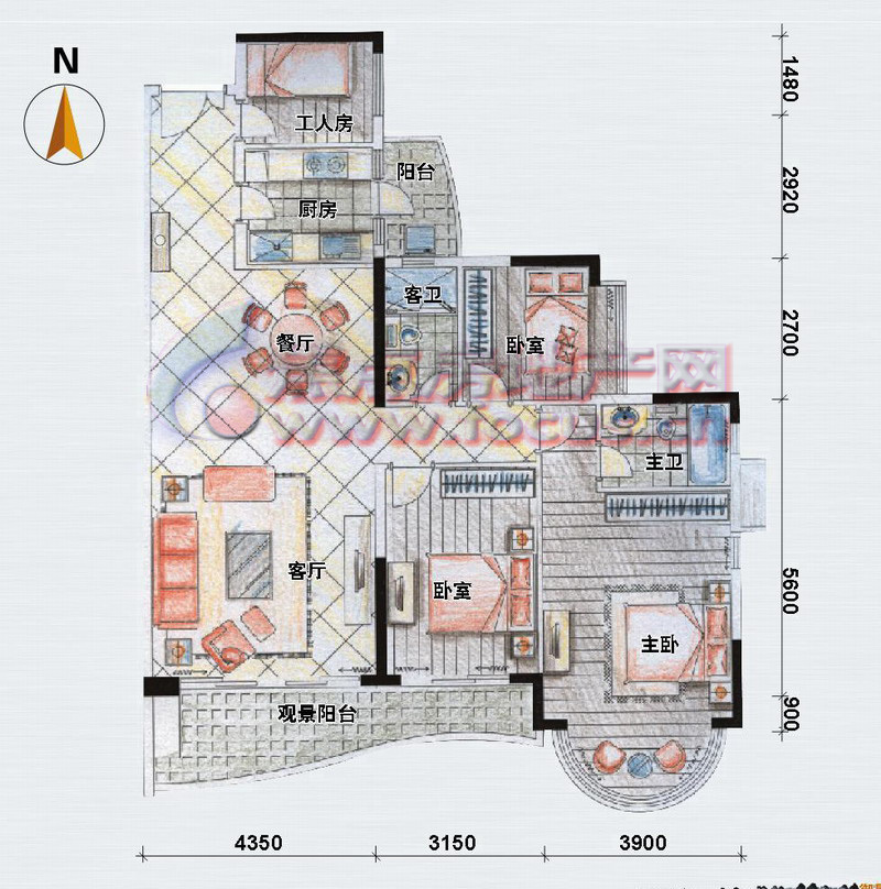 0室-2007金牌户型参选-逸景翠园御华轩A座02单位正南向166方户型