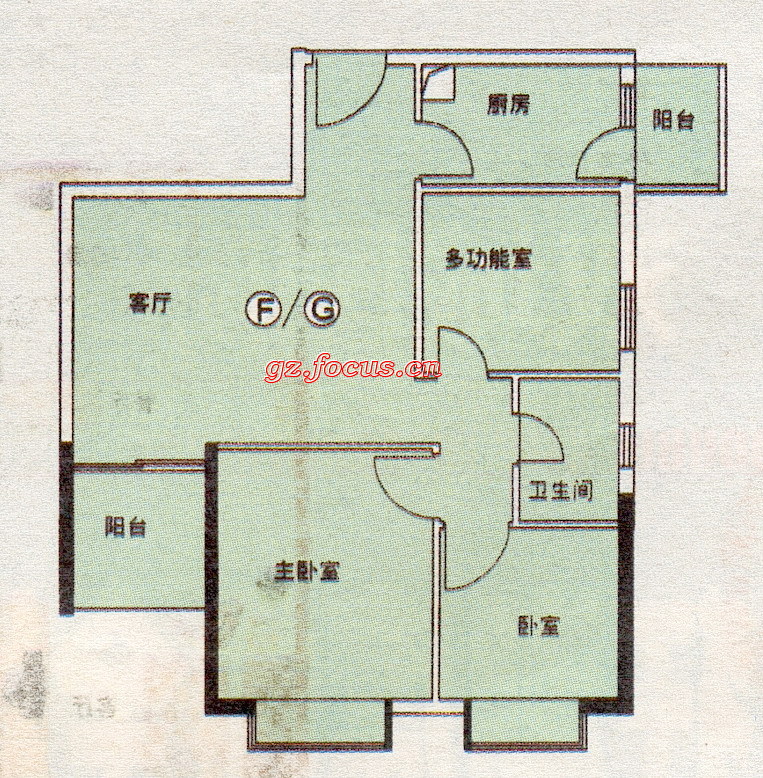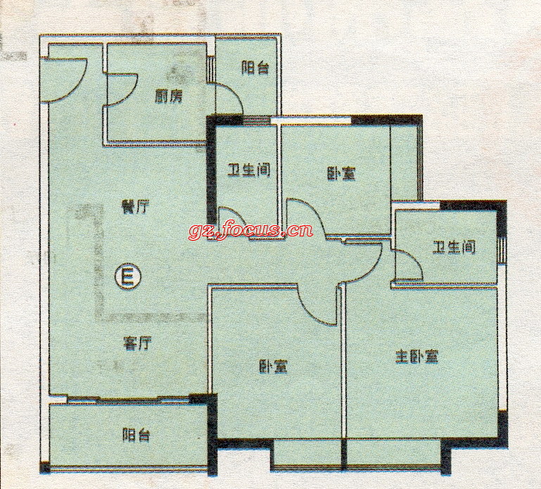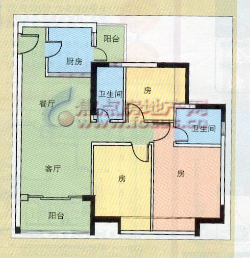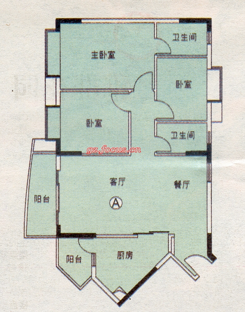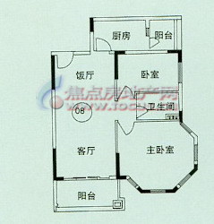 2室2厅1卫-保利百合花园二期A1栋二房二厅单元平面