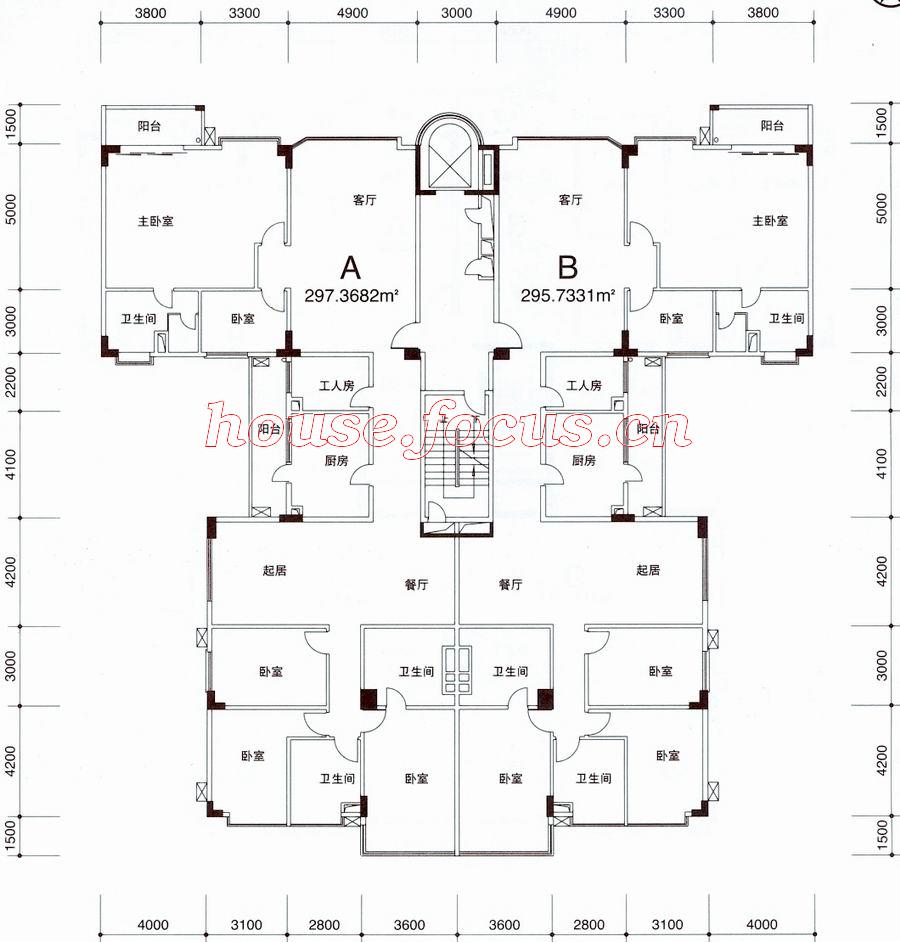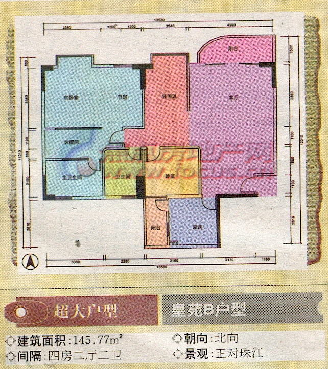 4室2厅2卫-珠江广场皇苑B单元平面