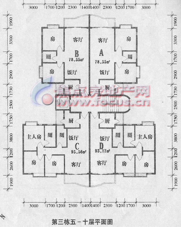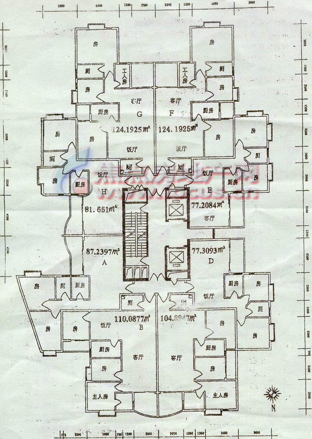 0室-顺华名庭第五栋高层电梯洋房标准层间隔平面