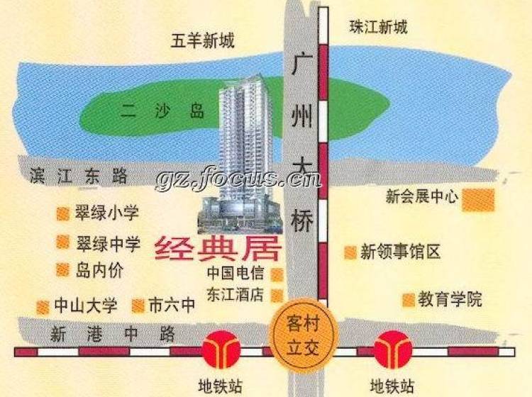 经典居地处广州大道,滨江东高尚住宅区,北倚天河,珠江新城,南靠地铁二号线客村站,西邻中山大学。周边生活配套齐全,交通便捷,离车站3分钟、离地铁站5分钟。