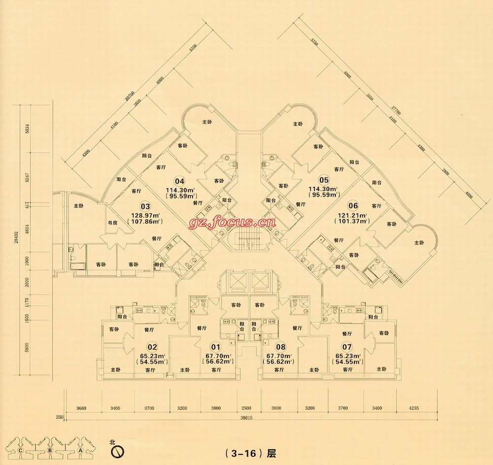 0室-紫云轩C座(3-16层)标准层平面
