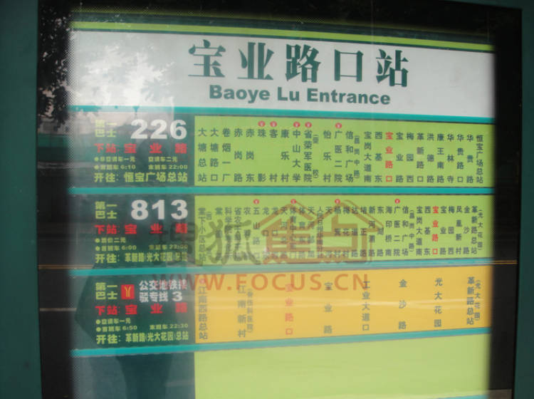 宝业路口站,途径53路、121路、244路、220路、226路、250路、270路、383路、527路、811路、813路、大学城3线、公交地铁接驳专线3等多条线路。