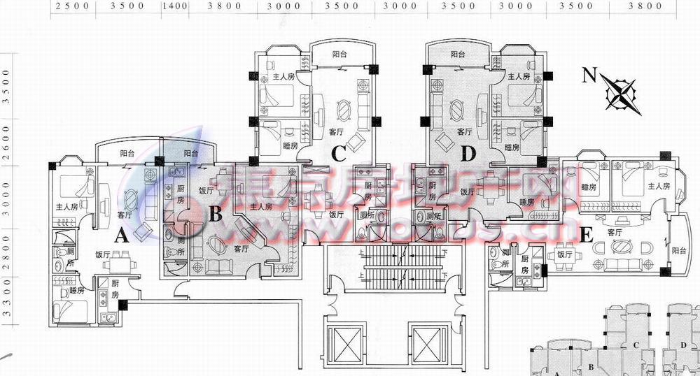 0室-西华苑C栋(春桃阁A、B、C、D、E单元)6-9层平面