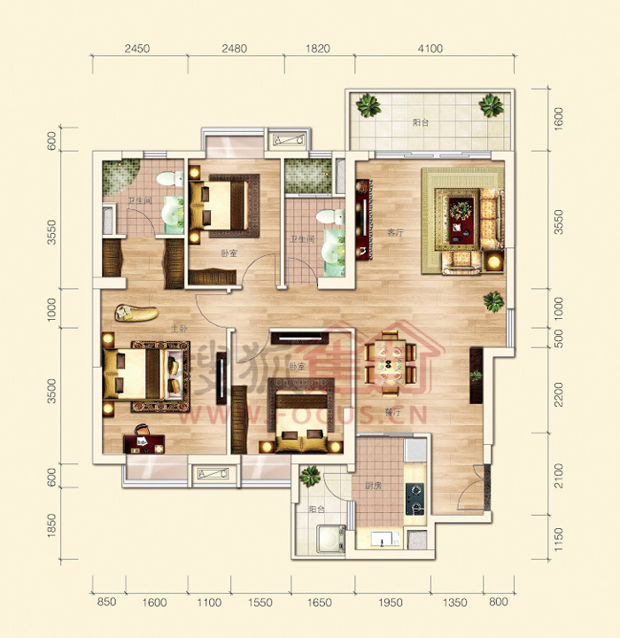 0室-雍翠园E区锦翠居E栋2-13层平面图户型