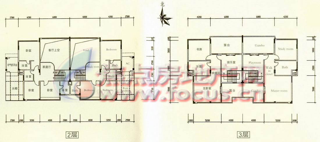 0室-江南世家三期水乡别墅F1型2、3层平面