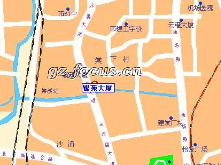 银苑大厦位于机场西远景路,两部电梯,总楼高13层,管理相当严密,而且交通也十分方便,步行不需1分钟便是棠下公交站,而步行大约8分钟便是机场生活区公交站.菜肉市场就在北国汇饺子馆旁,不管您住家还是出租都很适合!