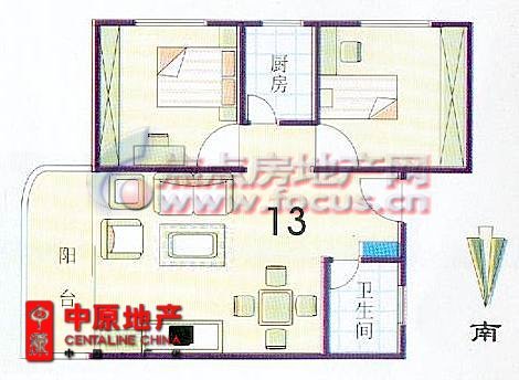 2室1厅1卫-绿景花园13号房二房一厅单元平面