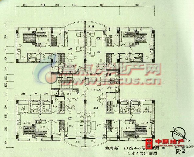 0室-海德花园海滨阁B座4-6层、C座四层平面