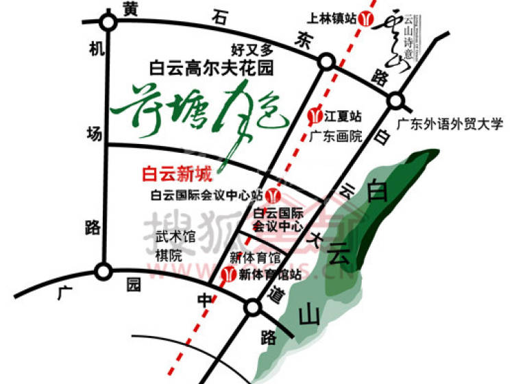 地铁二号线江夏站位于荷塘月色东面,步行10分钟即达,预计2009年即可开通,届时出入天河、越秀、海珠、芳村等仅十分钟。