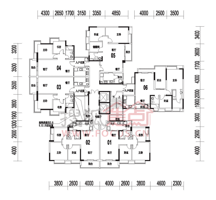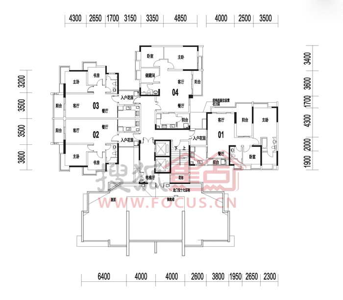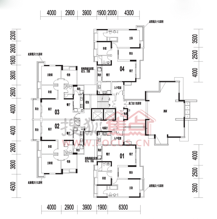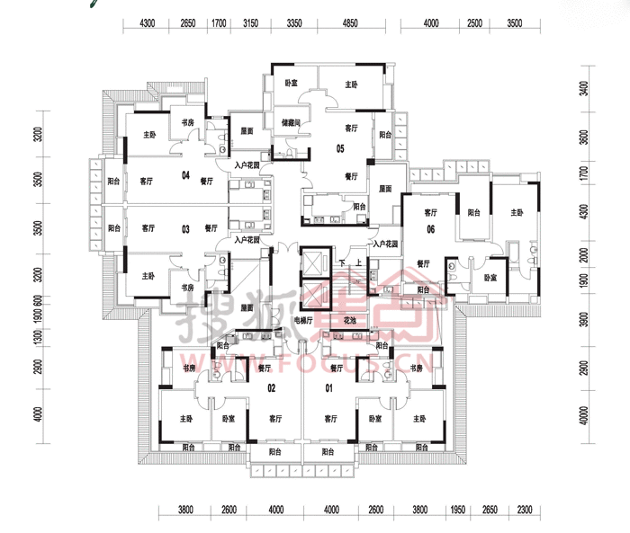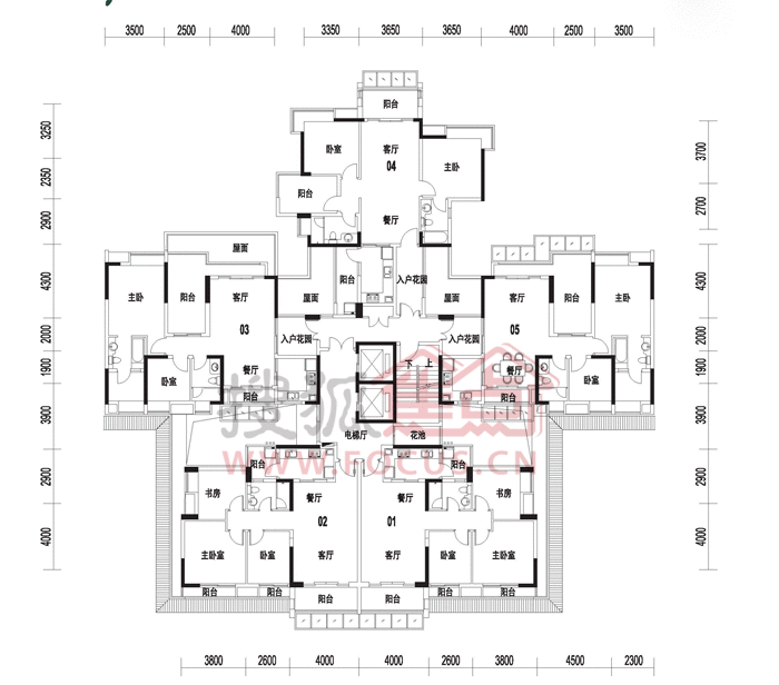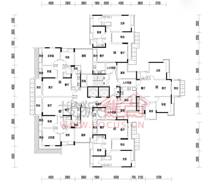 上下层单元(双数层与单数层单元)的客厅和书房互为退台形成高低错落的大型空中花园,客厅落地玻璃、自家阳台、邻居的空中花园、小区园林,令每套单元的视野景观立体化。