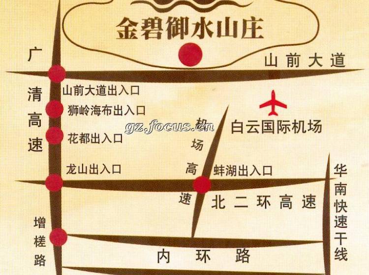 金碧御水山庄位于广州北部著名的芙蓉嶂风景旅游区域内,配套有大型游乐场,水上休闲运动中心,周边分布着多个自然及人文景观,堪称广州休闲度假的胜地。