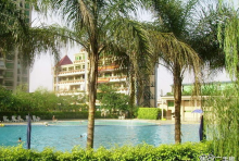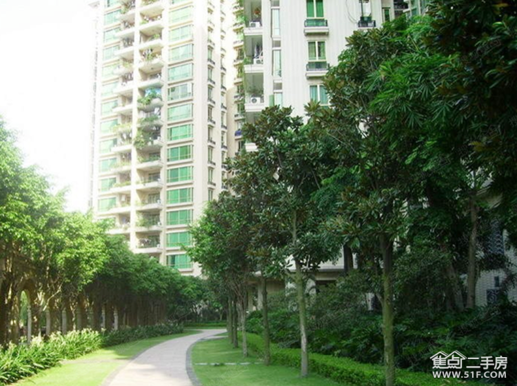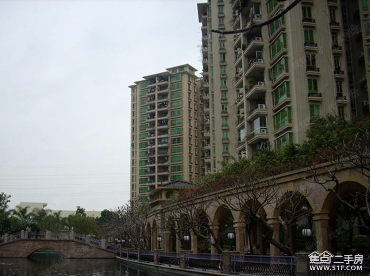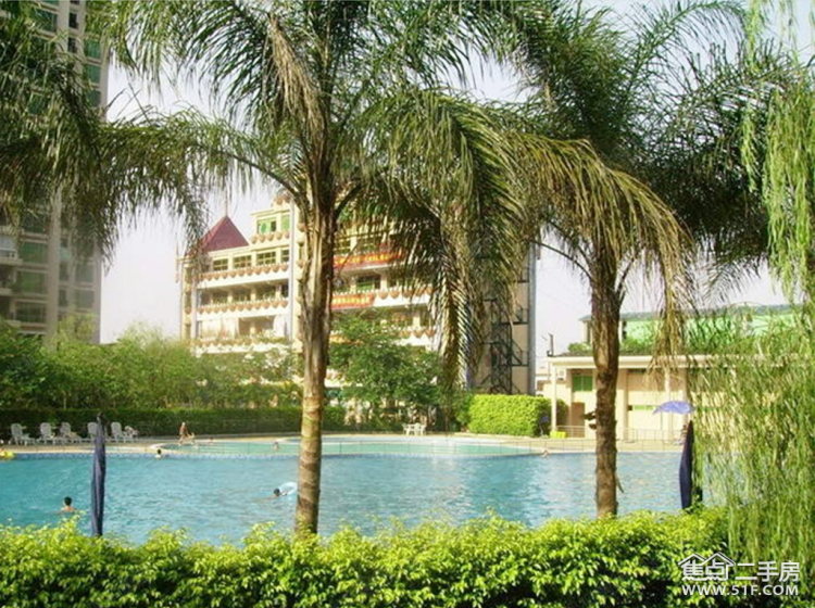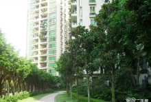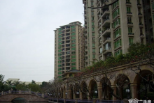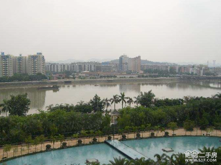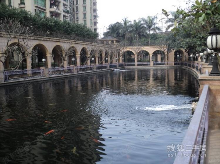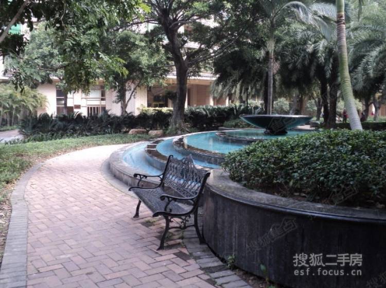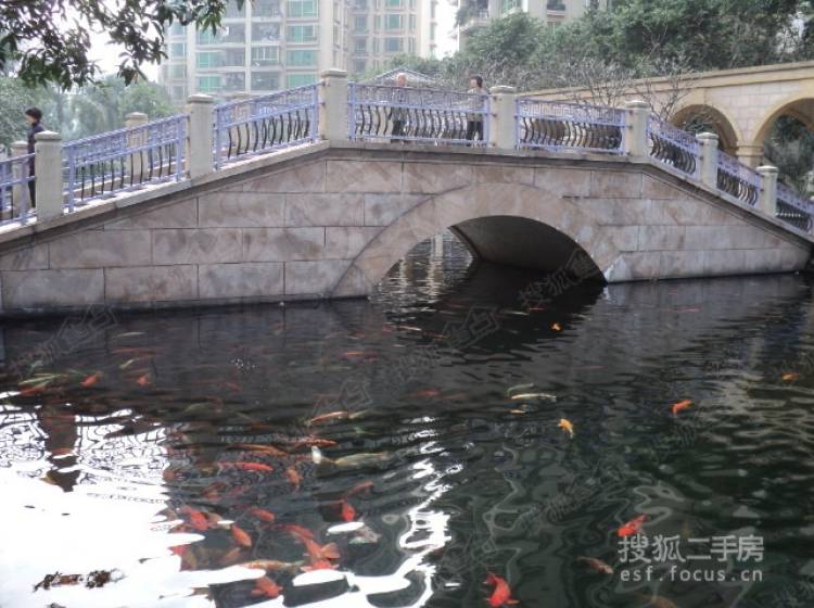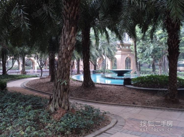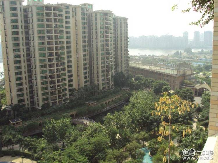 二期单位南向望区内水景园林,由于区内绿化广场有多个水池景观,且园林造得较为精致。