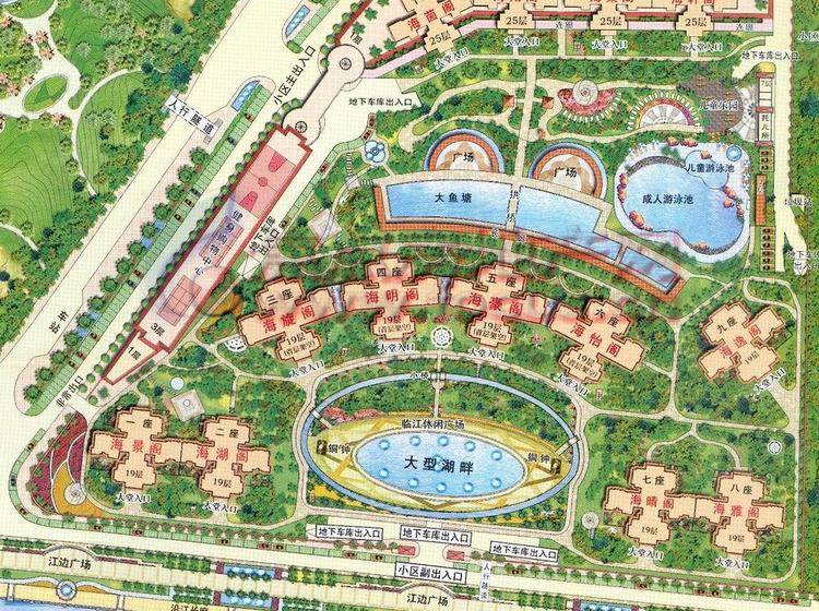小区内部配套:健身娱乐中心会所、大型地下停车场、托儿所等