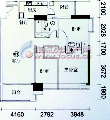 3室2厅2卫-东海嘉园D塔2101单元平面