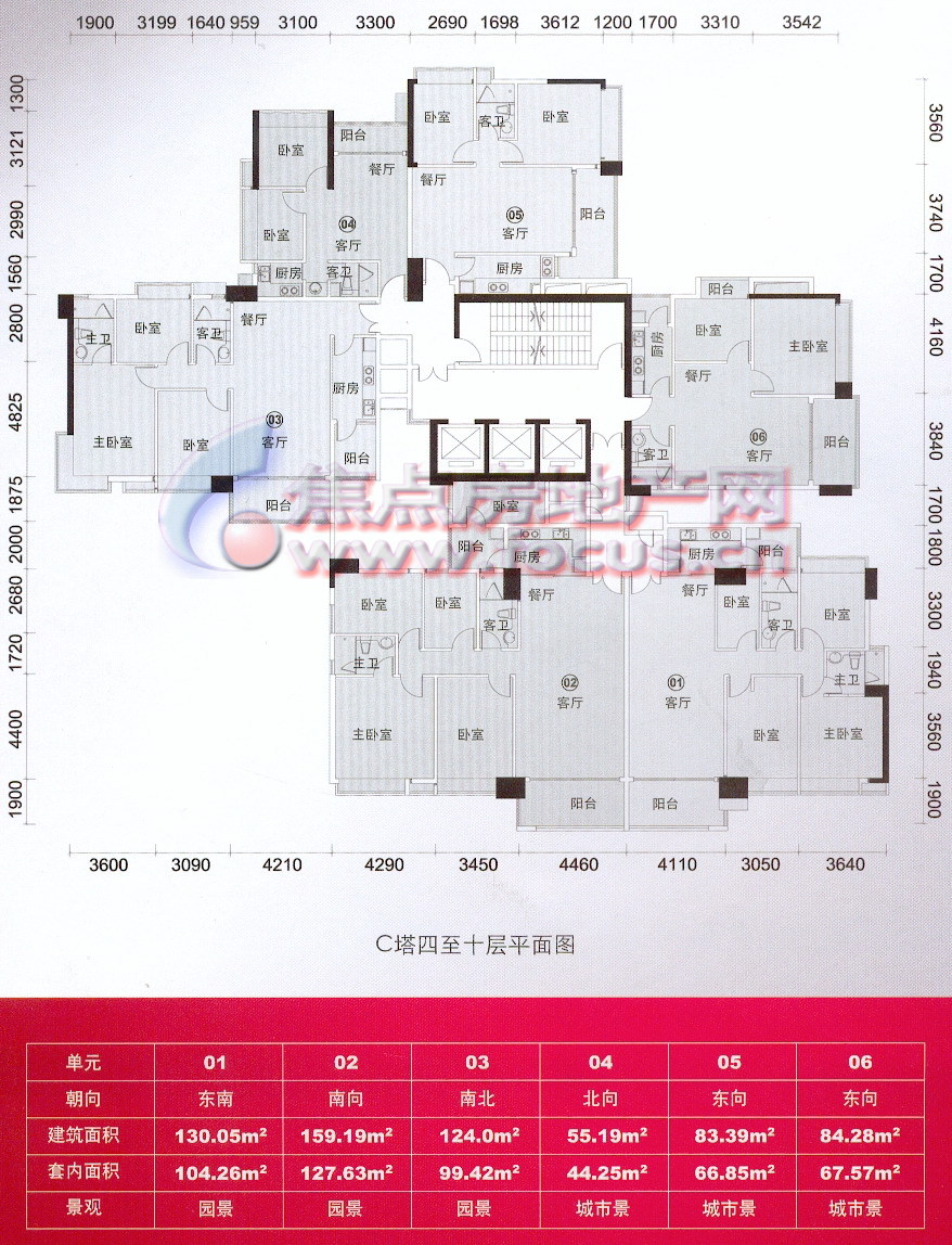 0室-东海嘉园三期淳东纯蓝C塔4-10层平面