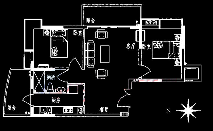 2室2厅1卫-凯御庭D7栋标准层02单元户型