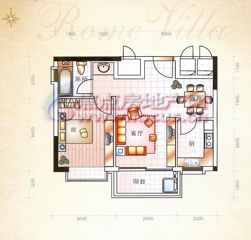1室1厅1卫-罗马家园东区一期凯雅庭A1-A5栋#01单位户型